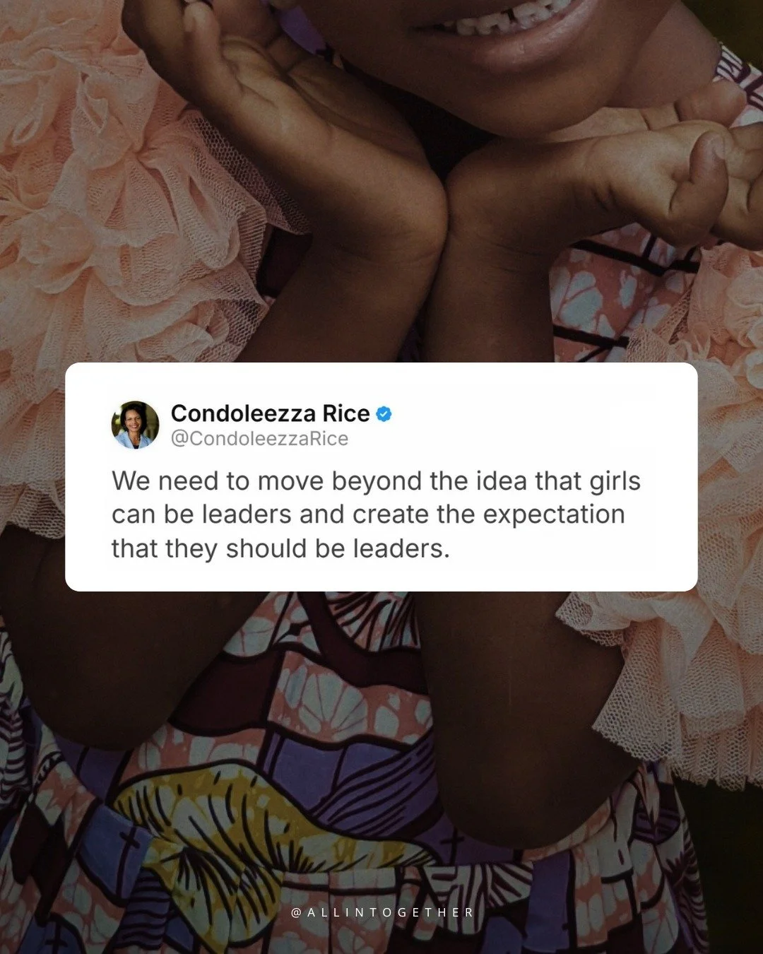 "At All In Together, we believe that when women rise, democracy thrives. Every day, Iโm inspired by the courage and determination of women who stand up, speak out, and lead change in their communities. "
